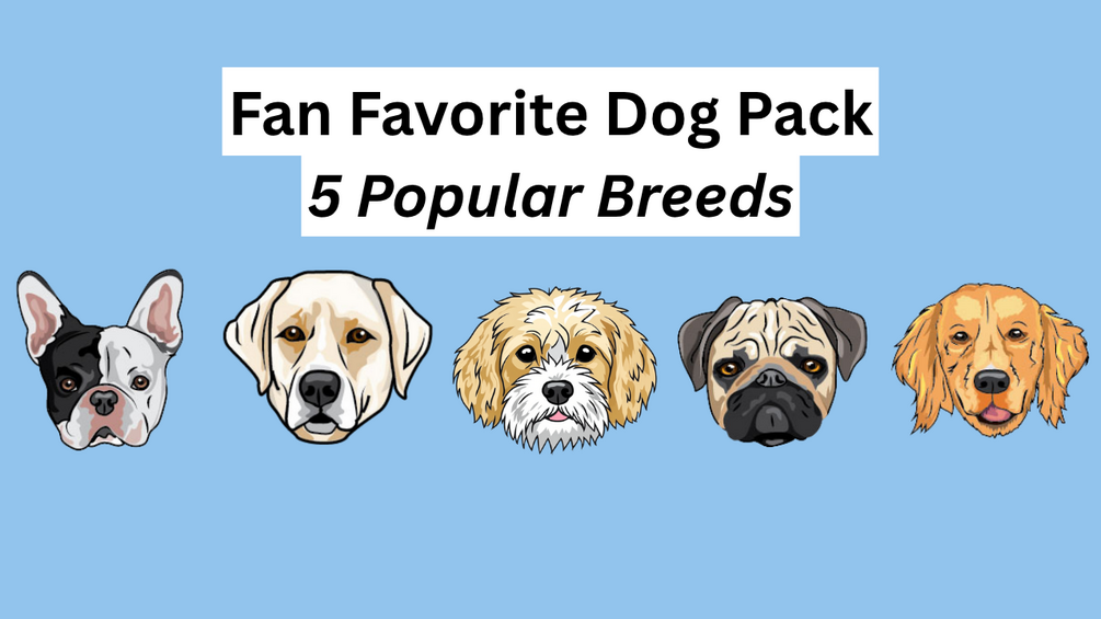 Our most-loved breeds, all in one pack! This 5-emoji bundle features the internet’s favorite pups like the Golden Retriever, French Bulldog, Labrador, Pug, and Doodle, each beautifully illustrated and better than any boring dog emoji!